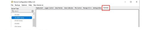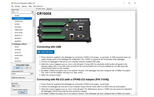 3.在设备类型下,输入数据采集器的型号并双击型号类型。(下例使用的是直接连接电脑USB 端口的 CR1000X。)